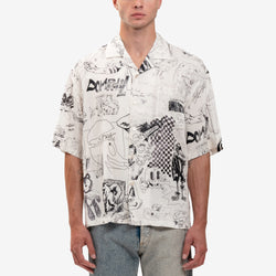 Introducing the Silly Collar Shirt, a short-sleeve button shirt with a unique bowling collar. Made from a comfortable twill fabric, this shirt features original DomRebel drawings and is detailed with elegant mother-of-pearl buttons. With a relaxed fit and true-to-size design, this shirt is the perfect addition to any wardrobe.