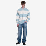 Our Male model is 183cm tall, waist 29" and is wearing a size Large