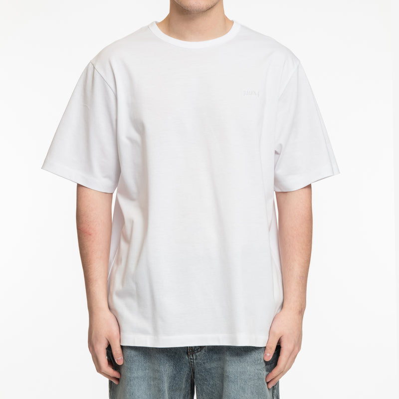 This Tonal Embroidered T-Shirt is made of soft cotton jersey and features a classic crewneck design. The front is adorned with an embroidered logo, while the back displays both an embroidered and printed version of the logo. Additionally, text is embroidered on the back, adding a unique touch to this comfortable and stylish shirt.