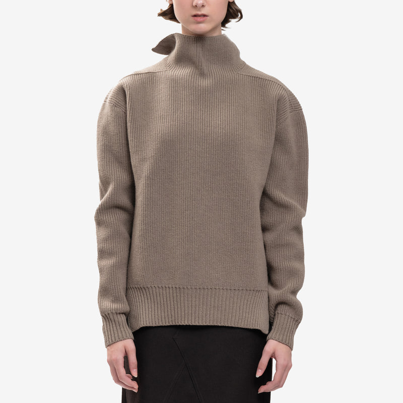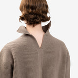 This hip-length Ladies Fisherman Tabard Sweater features long sleeves and a loose rounded fit. The high tabard neck, ribbed collar and cuffs, level shoulder seams, and slight splits at the side seam hem provide both style and comfort. Additionally, it includes a centre back split and a signature knit channel running down the centre back spine.