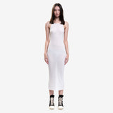 This ribbed tank dress is made from a blend of viscose and silk that creates a soft and textured feel. It uses FSC® approved viscose fibers for responsible sourcing and zero deforestation. The production process takes place near Rick Owens' home base in Concordia, Italy, from material knitting to sewing and finishing.