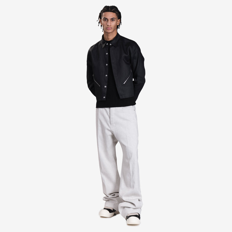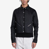 Rick Owens Men's Tour Alice Shirt in Black features a structured silhouette, sharp collar, zippered pockets, and ribbed hem detailing for a bold, modern aesthetic.