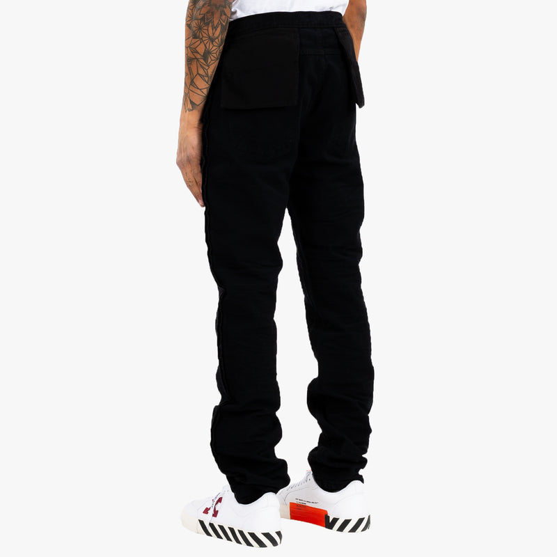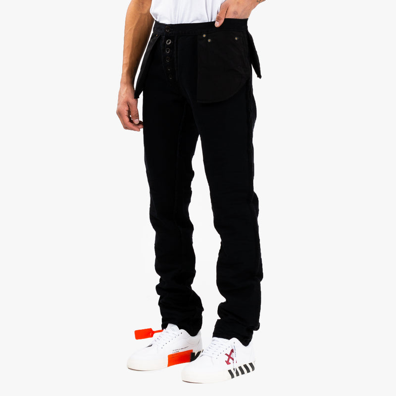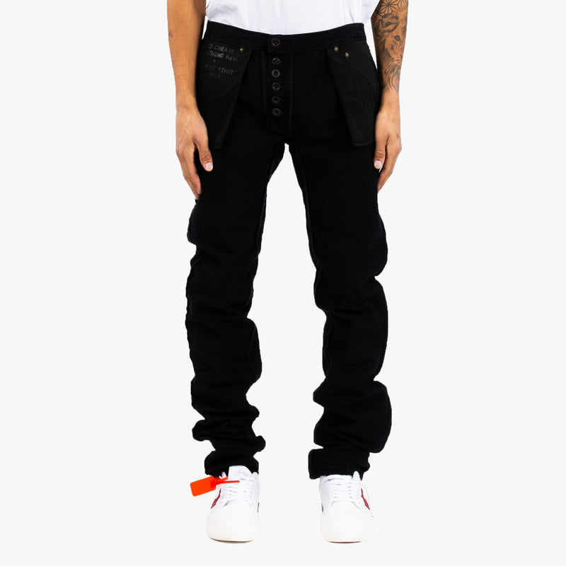 Unravel Project Stone Reversed Denim crafted from 100% premium cotton in Italy. These unique black jeans feature reversed denim detailing with oversized front pockets and button fly, blending edgy aesthetics with utility. A streetwear staple for those seeking avant-garde style.