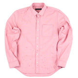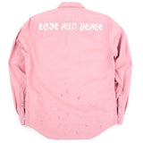The Love and Peace Distressed Shirt features a distressed design throughout and a front button closure. Made in Japan, this shirt includes a left chest pocket and a bold "Love and Peace" message on the back.