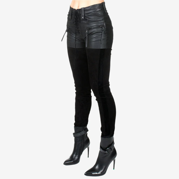 70% OffUnravel Womens Stone Denim Velvet Lace Up Jeans Black - 1Unravel Womens Stone Denim Velvet Lace Up Jeans Black - 2