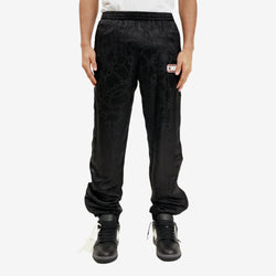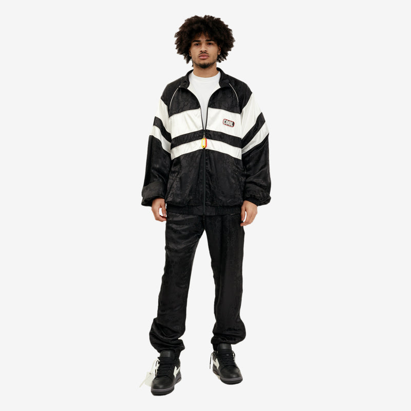 Expertly crafted, these 80's Silk Track Pants feature a striking tonal printed chain design throughout. The zipper closure and concealed side pockets add convenience, while the logo patch on the left chest adds a touch of branded style. Piping detail runs down the sides for a sleek look, and the elastic waist and bottoms provide a comfortable fit. Made in Hungary, these pants are made of 65% Viscose and 35% Silk for a luxurious feel.