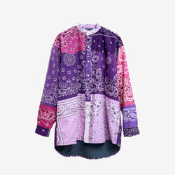 This garment features a patchwork design made from vintage fabrics and is secured with a snap button front closure. It also includes a Mandarin collar for a touch of elegance. Crafted from 100% CO fabric, this product was expertly made in Vietnam.