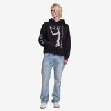Inspired by Michael Haneke’s cult film, this oversized hoodie features raw-edged seams and haunting graphic prints across the front, back, and sleeve. Crafted from washed black cotton, it fuses lo-fi VHS aesthetics with ERD’s signature punk nihilism.