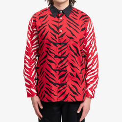 This striking CLOT Button Up Chinese Shirt features a unique animal stripe pattern that covers the entire shirt, adding a touch of excitement to your daily attire. The stand collar and quarter button up closure on the front, along with the quarter Pankou button closure on the back, create a modern and functional design. Made of 100% CO and crafted in China, this shirt is perfect for those who value quality and style.