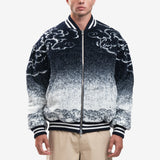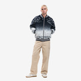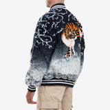 The navy blue faux shearling of Kenzo's CLOUD TIGER BOMBER JACKET features a cloud pattern and tiger motif. With a relaxed fit, dropped shoulders, and long sleeves, as well as a ribbed stand-up collar, cuffs, and hem, this jacket offers both style and function. Keep your hands warm or store small essentials in the two side slit pockets.