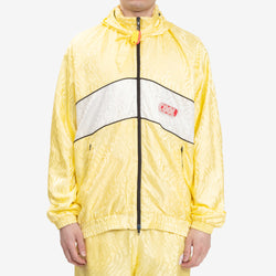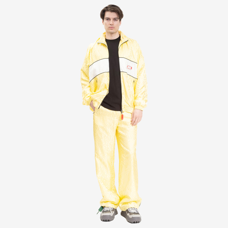 The COOL T.M COOL Tracksuit Jacket boasts an oversized fit with a chain jacquard design and silk satin piping. It features a front double puller zipper with a keychain and is lined with cotton mesh for added comfort. The zipped side pockets and elasticized waistband and cuffs provide practicality and style. And don't miss the eye-catching cool patch! Made of 70% PA and 30% SE fabrics in Hungary.