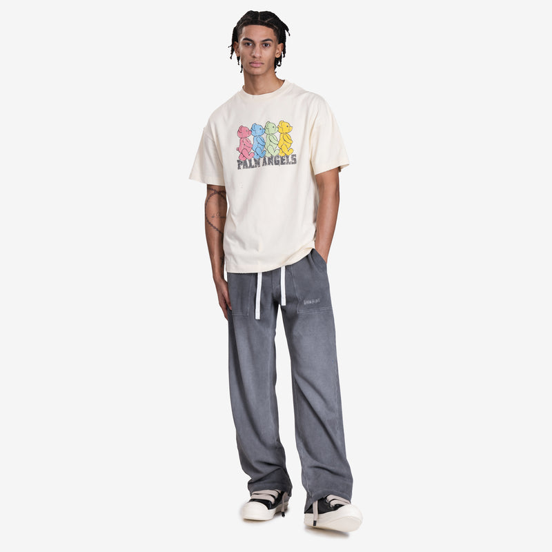 Palm Angels Tee features a vibrant multicolor bear graphic, relaxed fit, and premium cotton fabric, creating a playful graphic design.