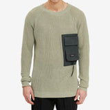 Constructed with a 100% Linen yarn and 100% Cotton fabric, the Tobia Birk Nielsen Dhenain Rib Pocket Sweater boasts a unique front left pocket featuring a velcro closure and drawcord. This knit sweater is expertly crafted in Italy for a luxurious, high-quality finish.