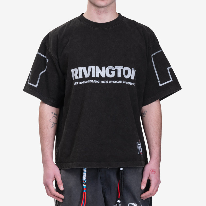 Crafted with a vintage-washed finish, the RRR123 Mansion Tee combines bold graphic storytelling with a relaxed, oversized fit. A distressed logo and text on the chest set the tone, while the back print delivers an expressive, layered composition.