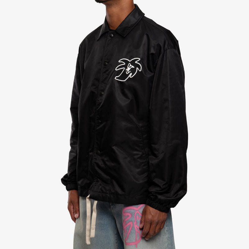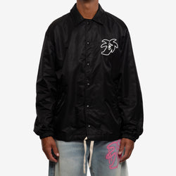 Palm Angels’ Hunter Coach Jacket blends streetwear edge with classic sportswear influence. Designed with a snap-button closure, it features a bold palm tree graphic on the chest and an oversized logo print on the back. The lightweight, water-resistant shell makes it a versatile layering piece, finished with elastic cuffs and a relaxed fit.