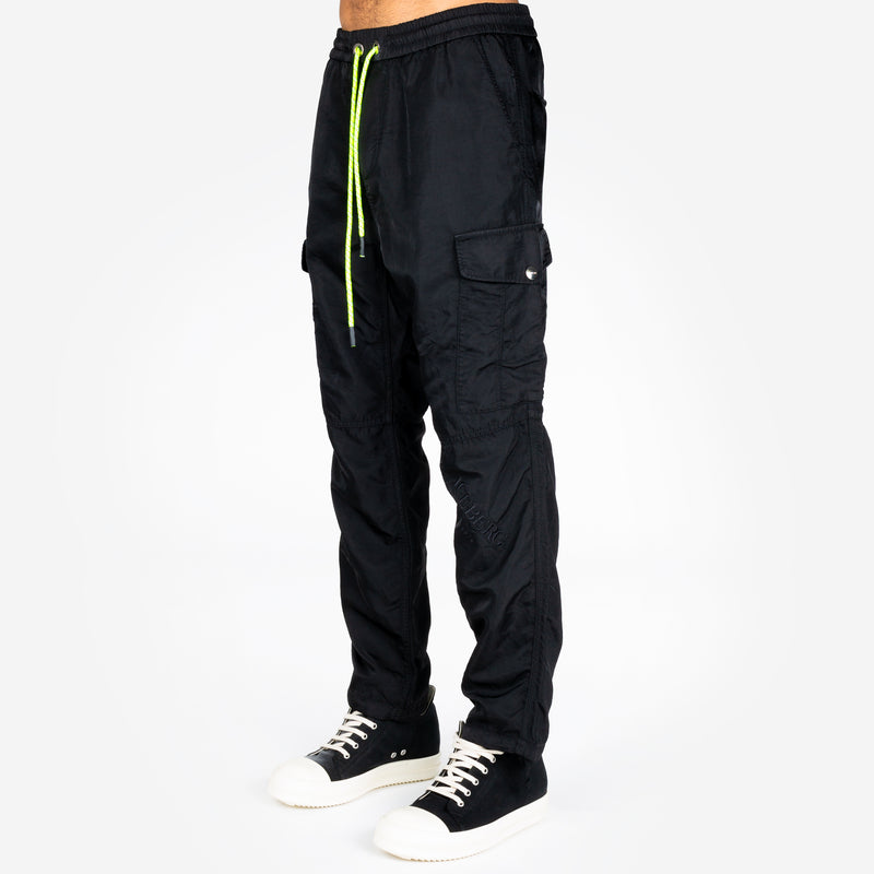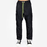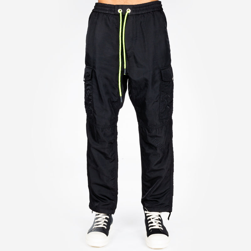 The Iceberg Cargo Pants offer a sleek take on utility wear with a relaxed fit and lightweight nylon construction. Featuring multiple flap pockets, subtle tonal branding, and neon drawstring detailing, these pants blend functionality with bold streetwear aesthetics. Elasticized cuffs and an adjustable waistband ensure a comfortable, modern fit.