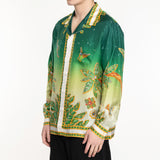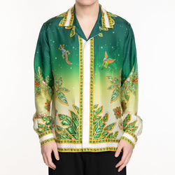 Crafted from luxurious silk twill, the Joyaux D'Afrique LS shirt boasts a sophisticated all-over print, blending nature-inspired Nigerian artwork and the brand's iconic jewelry designs with an elegant tennis club layout. Featuring a Cuban collar, button closure, and opulent gold rimmed enamel buttons, this long-sleeve shirt exudes an exclusive and tasteful charm.