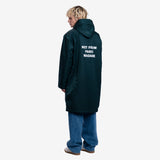 This Drole De Monsieur Parka in dark green exudes minimalist style with a clean, oversized fit. Featuring the signature "Not From Paris Madame" print on the back, the parka is both functional and stylish. With a full hood, snap button closure, and large front pockets, it’s perfect for cold weather while making a statement.