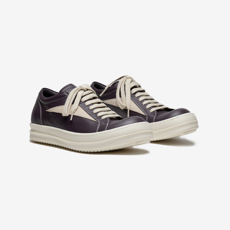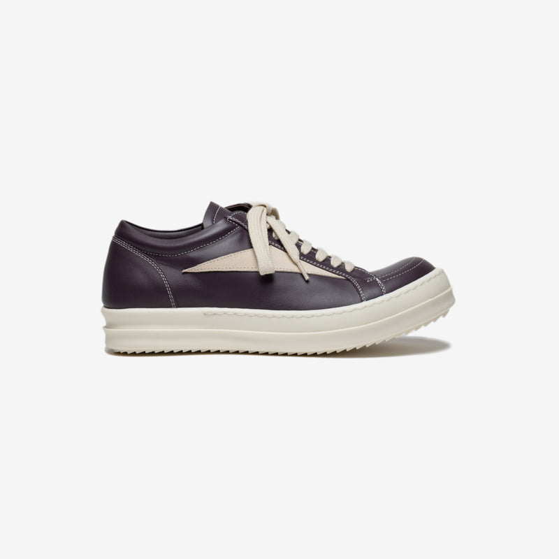 Elevate your style with Rick Owens Luxor Amethyst Vintage Sneakers for women. Crafted in Italy, featuring 100% calf leather upper and toe, and a durable thermoplastic rubber sole.