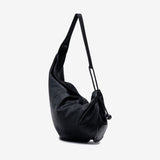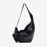 This Marni large hobo shoulder bag features a slouchy silhouette in black leather with a textured finish. The minimalist design is complemented by an adjustable strap and drawstring closure.