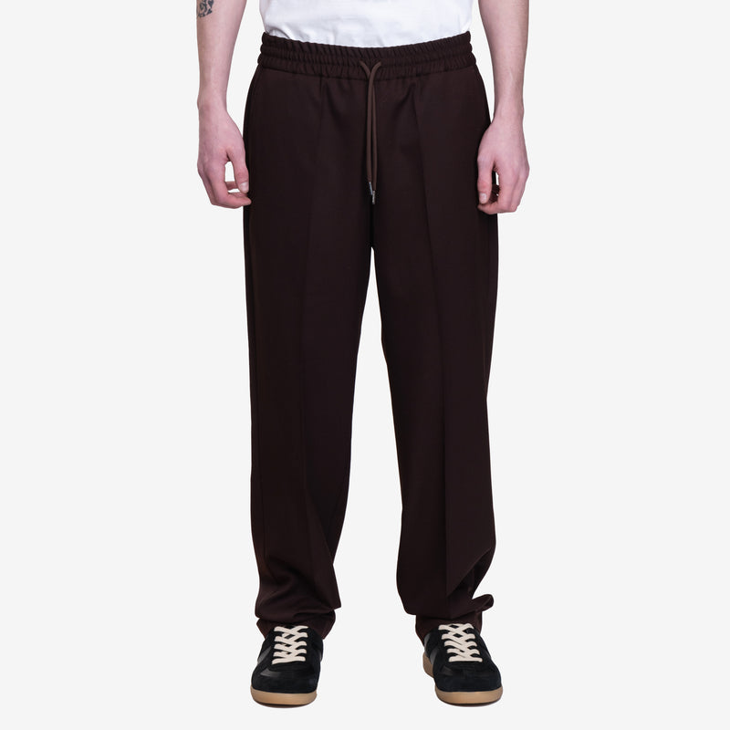 The Drôle de Monsieur Mens Le Pantalon Droit Laine in Dark Brown combines tailored sophistication with comfort. Made from a luxurious wool blend, these straight-leg trousers feature an elastic waistband with drawstring for a relaxed yet refined fit. The clean design and versatile silhouette make them perfect for both casual and smart styling.