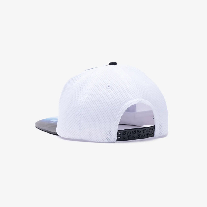 The Casablanca Le Prémonition Trucker Cap features an airbrushed alpine landscape graphic with Casablanca branding across the front. Designed with a classic mesh back and adjustable snap closure, it blends retro aesthetics with the brand’s signature dreamy, sports-luxe vibe.