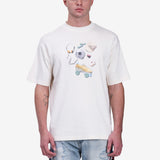 This cream 100% cotton interlock t-shirt with a ribbed neckline features the 'Soirée' print on the front.