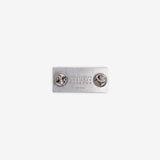 The MM6 brooch features a bold rectangular design in red enamel, engraved with the iconic numbers logo.
