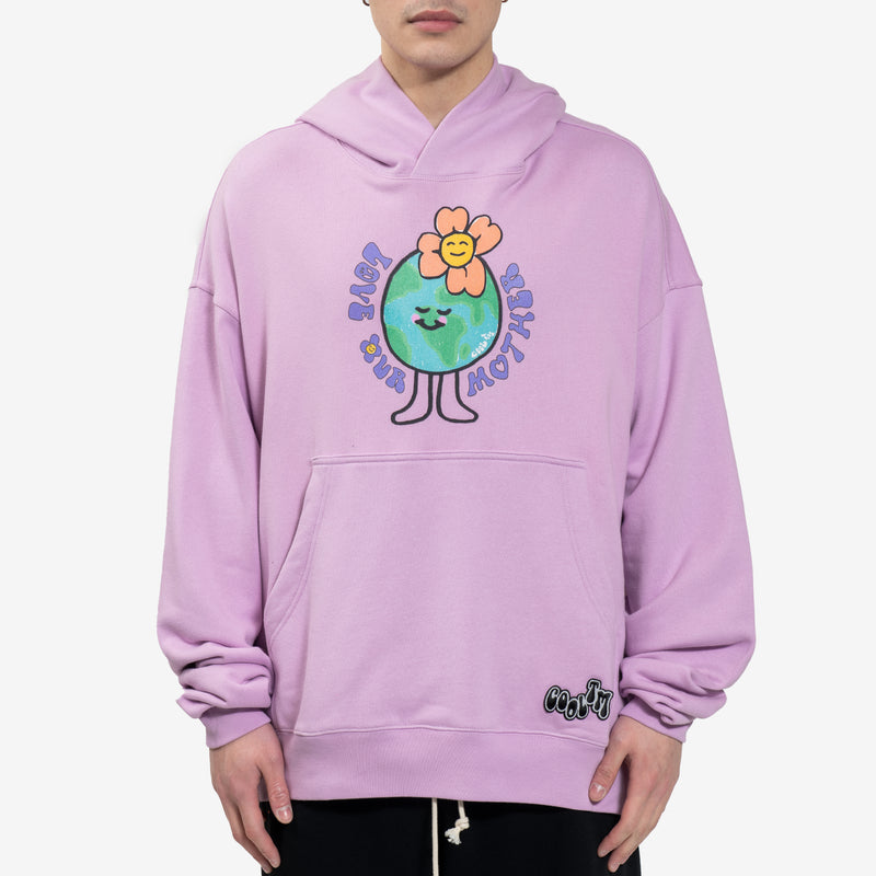 This oversized hoody, part of our Love our Mother collection, features a printed graphic on the front, a hood, a kangaroo pocket, and rib knit cuffs and hem. It is made of 100% cotton and manufactured in Portugal.