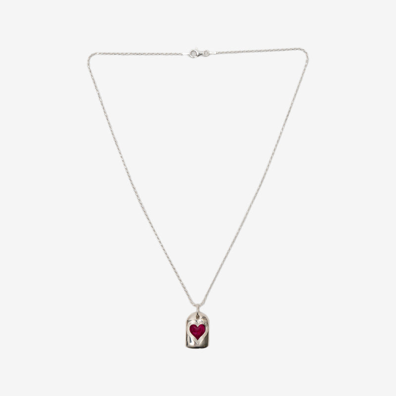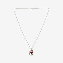 Introducing the Blue Burnham Lovers Pendant, beautifully crafted from .925 Sterling Silver. Featuring a striking red heart gemstone set within a delicate silver frame, this pendant captures the essence of love and connection. Made in the UK, it's a timeless symbol of affection and elegance.
