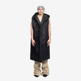 Rick Owens Luxor Sleeveless Padded Coat: Sleek, versatile with concealed snap button & zipper front. Made in Moldova. 100% Nylon body, cotton-lined pockets, polyester padding.
