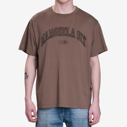 The Maison Margiela MM6 Mens Margiela Six T-Shirt in Light Brown combines relaxed style with bold branding. Crafted from soft cotton, it features an oversized fit with a crew neckline and the iconic "Margiela Six" graphic across the chest. Perfect for casual and elevated streetwear looks, this tee delivers comfort and effortless sophistication.
