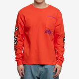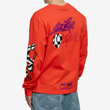 Chrome Hearts Mattyboy Sadistic Lipstick LS Tee - Vibrant orange long-sleeve tee with edgy graphics on back & sleeves. 100% Cotton, USA-made, perfect streetwear.