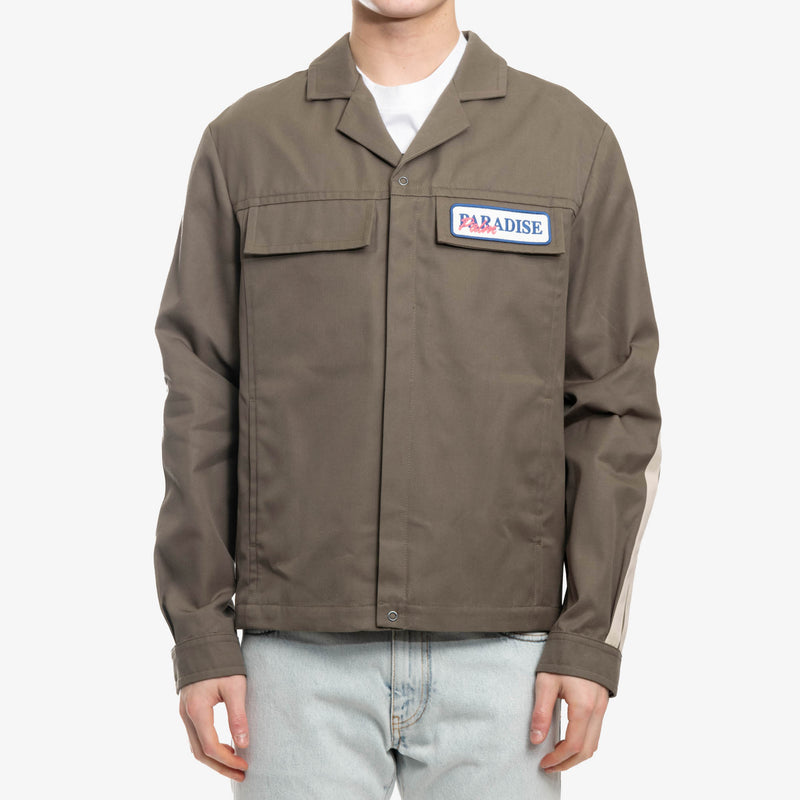 A workwear-inspired layer with a refined streetwear twist, the Palm Angels Paradise Coach Jacket is cut from structured cotton canvas. A tonal tape stripe runs down each sleeve, complementing the relaxed fit. A concealed snap-button front keeps it clean, while the chest patch adds a vintage Americana feel.
