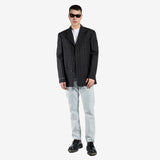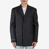 The Off-White Patterned Skate Fit SB Blazer is a bold yet sophisticated piece featuring a sleek black base with a subtle grid pattern. Designed with a relaxed skate-inspired fit, it offers structured shoulders, a single-button closure, and premium tailoring. Perfect for elevating casual looks or adding an edge to formal outfits.
