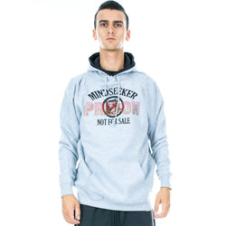 The Mindseeker Prison Rhinestone Hoody features a drawstring hood and a striking "Not For Sale" graphic on the front, adorned with rhinestones. On the back, a graphic of thugs is showcased, while rib knit hem and cuffs add a finishing touch. Crafted from 100% cotton, this hoody is proudly made in Japan.