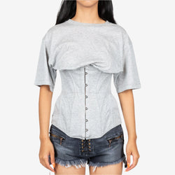 The Unravel Project x Agent Provocateur T-Shirt redefines casual with a corset-inspired twist. Made from 100% cotton, this tee blends comfort with structured elegance. The back lace-up detail adds an edgy touch, while its Moroccan craftsmanship ensures high quality. A bold statement piece!