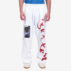 These Better With Age (BWA) sweatpants make a statement with bold, eclectic graphics, featuring retro prints, playful illustrations, and striking text. The relaxed white fit adds comfort to the unique design, making these sweatpants a standout piece that fuses nostalgia with modern streetwear style.