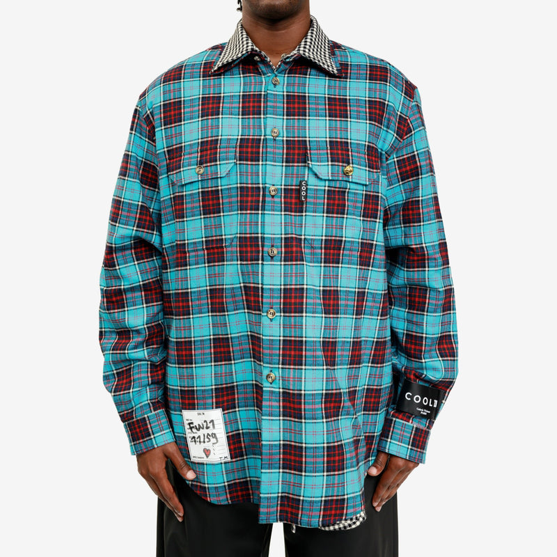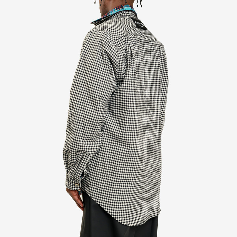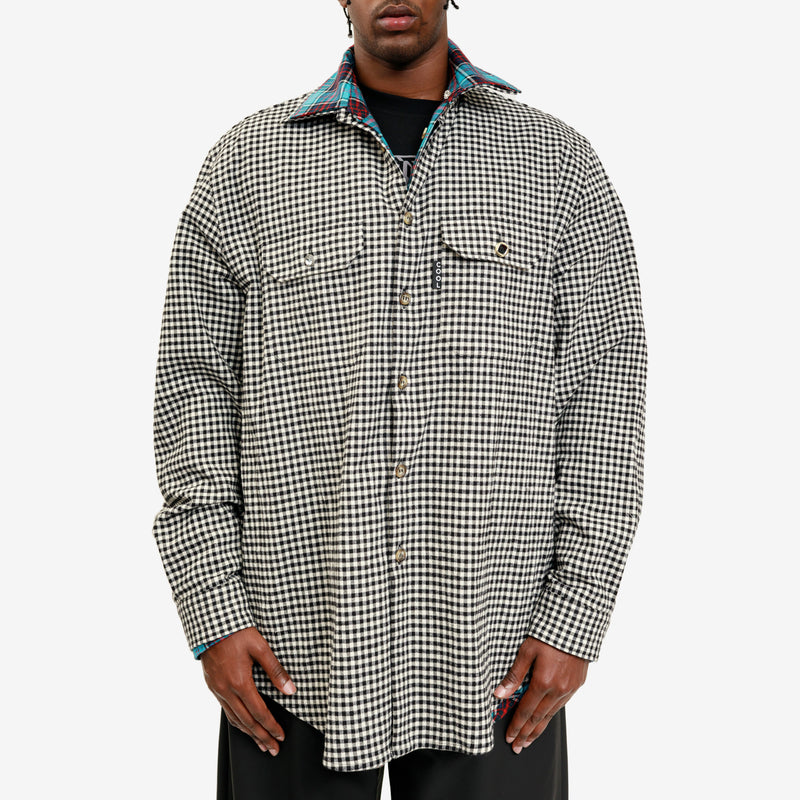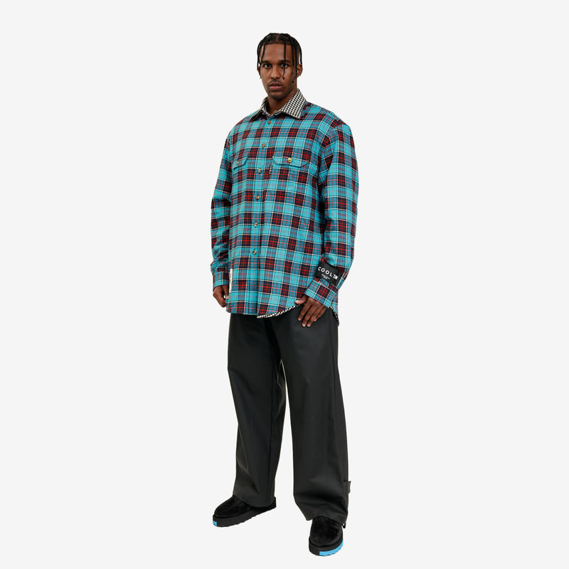 This reversible check shirt features a blue check pattern on one side, and a small checker pattern on the other. The front button closure and adjustable cuffs provide convenience, while the button closure chest pockets offer storage options. Made of 100% cotton in Bulgaria.