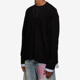 The Shirt Layered Cardigan by Juun.J features a faux layered shirt underneath and a convenient front button closure. The button adjustable cuffs and side slits add functionality to this stylish piece. Made in Korea from a blend of 70% cotton and 30% wool.