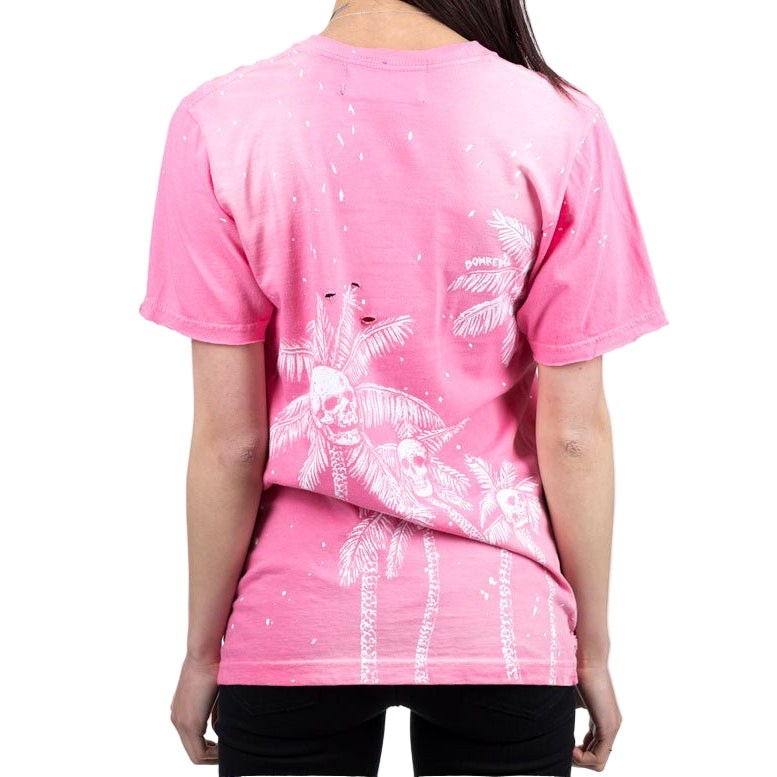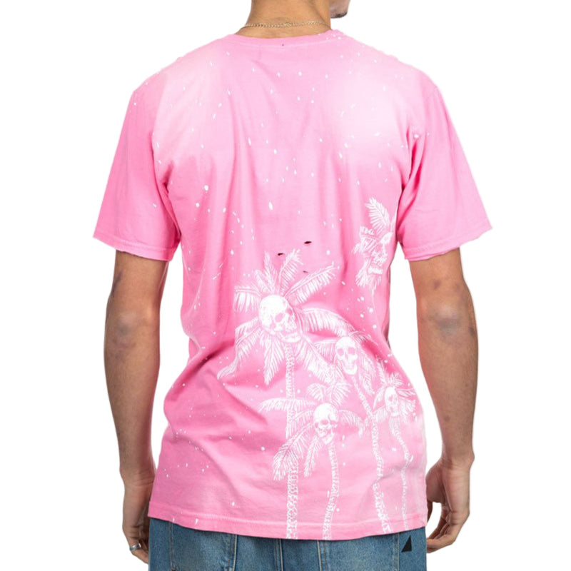Skull Palms Paint Splatter T-ShirtXS / Pink