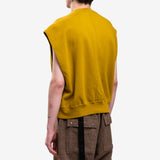 This sleeveless Jumbo Tatlin sweatshirt is a loose fit and falls above the hips. It has wide shoulders and deep armholes, showcasing the side body. The round crewneck and ribbed waistband add a touch of style. Signature level shoulder seams and a seam running down the center back spine are also featured.