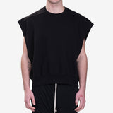This Sleeveless Jumbo Tatlin Sweatshirt has a loose fit and sits above the hip. The wide shoulders and deep armholes reveal the side body, while the round crewneck and ribbed waistband offer comfort. Notable features include signature level shoulder seams and a seam that runs down the center of the back.