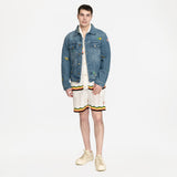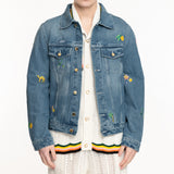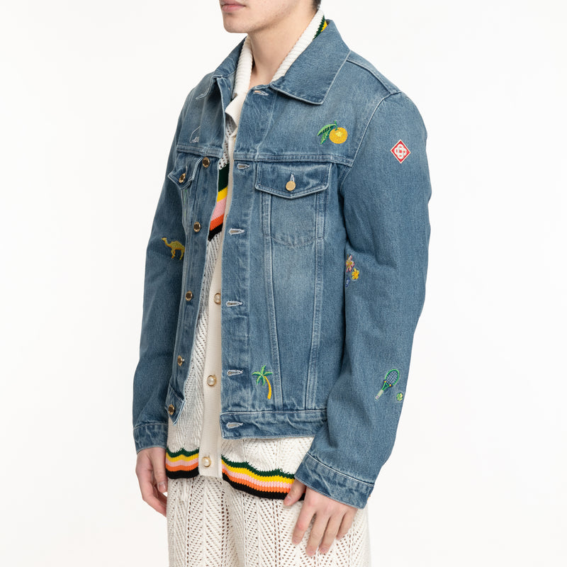 Crafted from 100% cotton and designed with a classic silhouette, this motif denim jacket features embroidered artwork showcasing the house's connection to nature and architecture. Complete with chest pockets and finished with luxurious gold hardware closures. Pair it with the coordinating straight-leg jeans for a sophisticated and exclusive look.