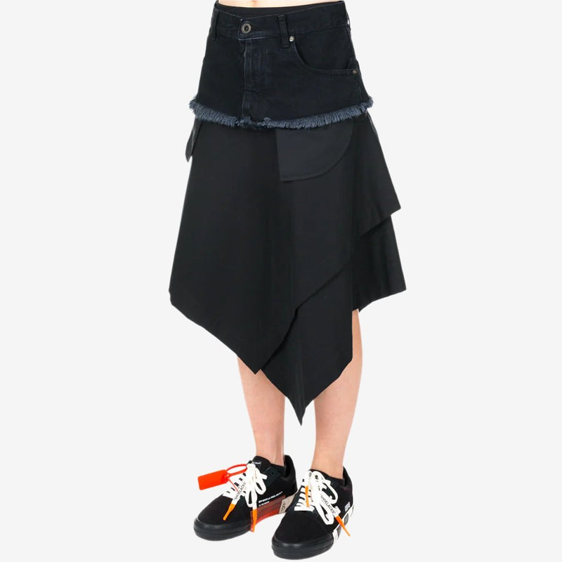 Womens Tela Asymmetrical Denim SkirtXS / Black