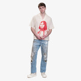 These 5-pocket jeans are intentionally distressed, pushing the limits of durability and innovation. Featuring belt loops for functionality, the MM6 numeric artwork tag and signature white stitch on the back add a subtle touch of recognition to these unconventional and edgy jeans.