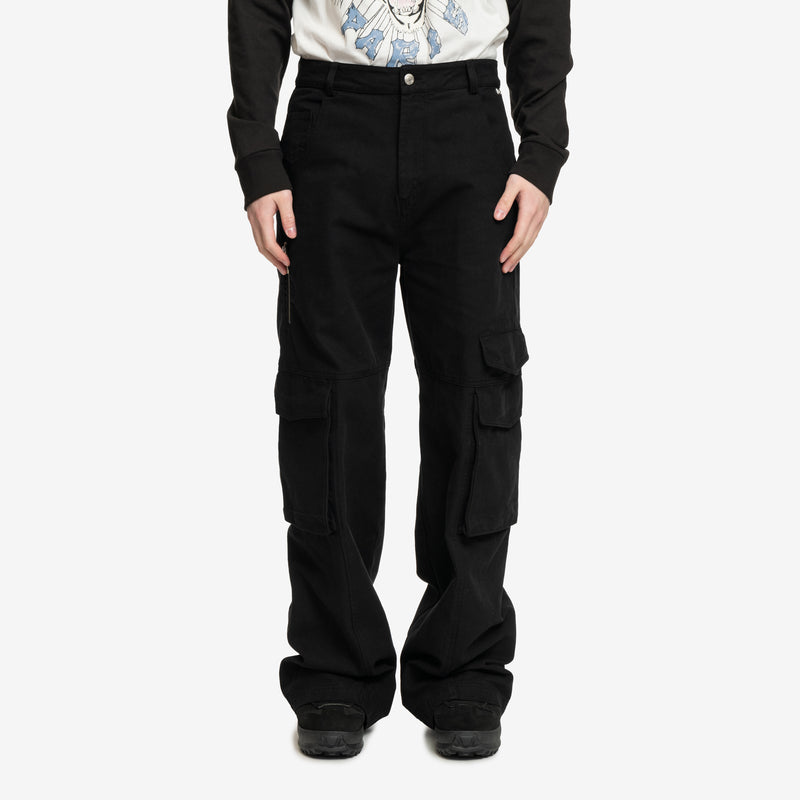 These Ultracargo linen pants feature practical side cargo pockets and a zipped pocket with a zipper pull on the right hip. The oversized fit provides extra comfort and utility.