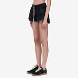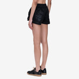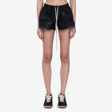These Womens Fog Denim Boxer Shorts feature a lightweight 10oz stretch denim fabric, with an overdyed and clear, semi-shiny foil overlay that creates a unique and waxy texture for a standout look.