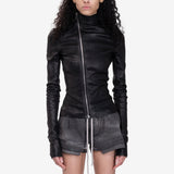 Crafted from premium leather, the Women's Gary Jacket boasts a sleek, form-fitting design that falls below the waist. Featuring long sleeves, a high neck, and an asymmetric zipper front opening, this jacket is accented with topstitching and level shoulder seams for added style.
